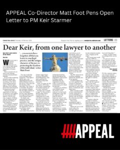 Dear Keir, from one lawyer to another… APPEAL Co-Director Matt Foot Pens Open Letter to PM Keir Starmer February 2026…